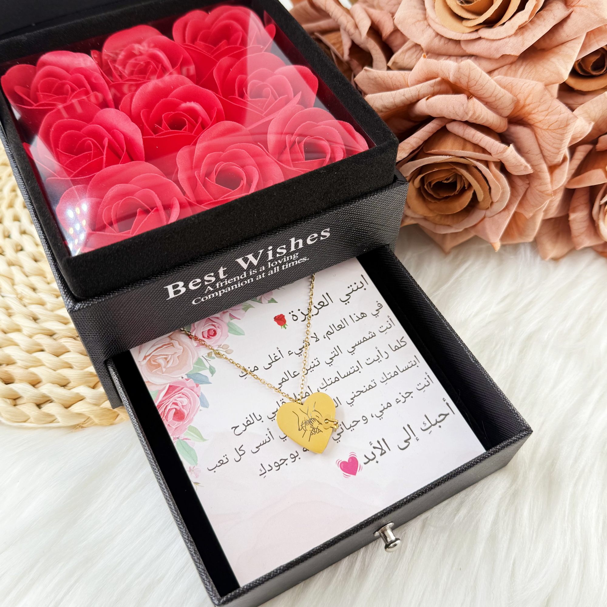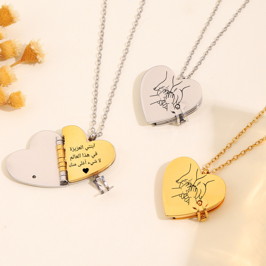 صندوق هدايا من الخشب الصلب عالي الجودة، عند فتح الصندوق، سيضيء الضوء قلادتك، وهو أنيق جدًا.