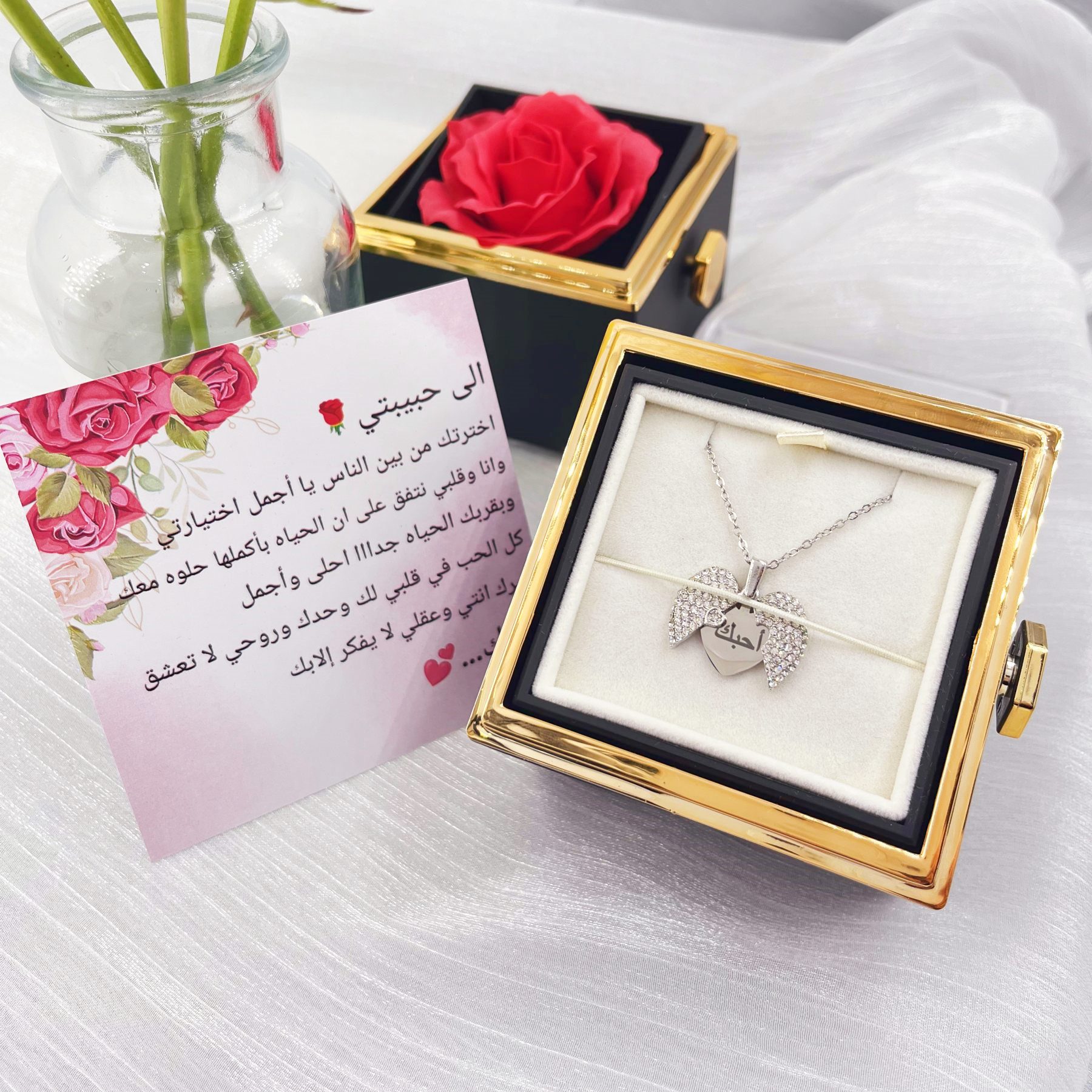 الى حبيبتي - علبة هدية من الوردة الخالدة مع قلادة على شكل قلب